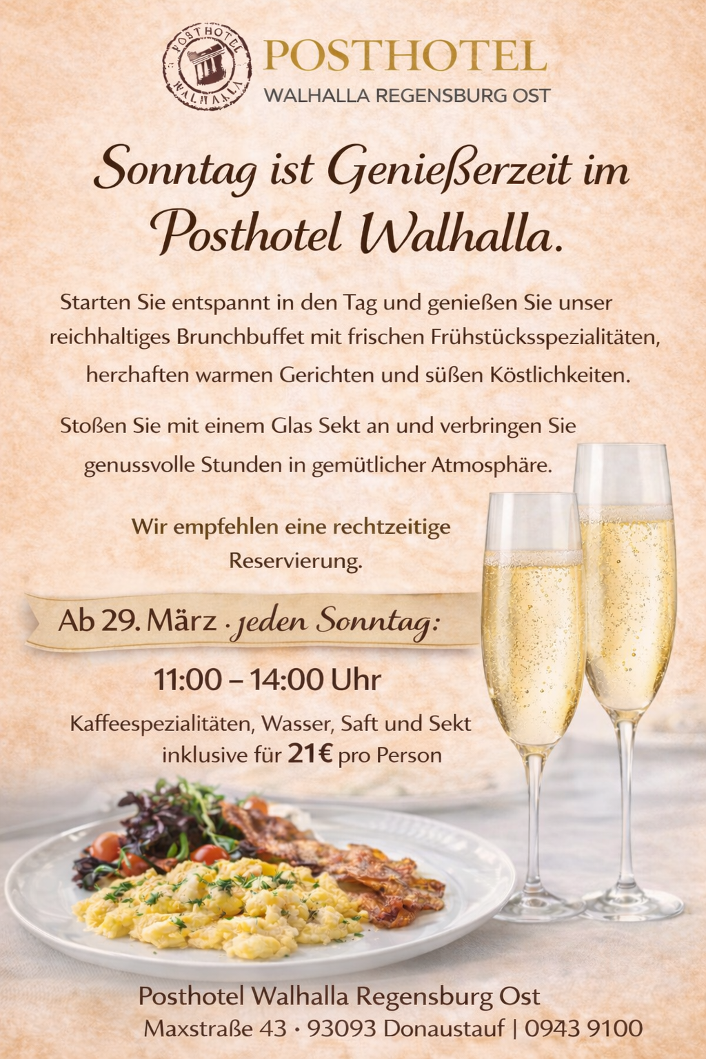 Reichhaltiges Frühstücksbuffet inklusive Heißgetränke täglich von 06:30 Uhr bis 10:00 Uhr für 20 € pro Person
