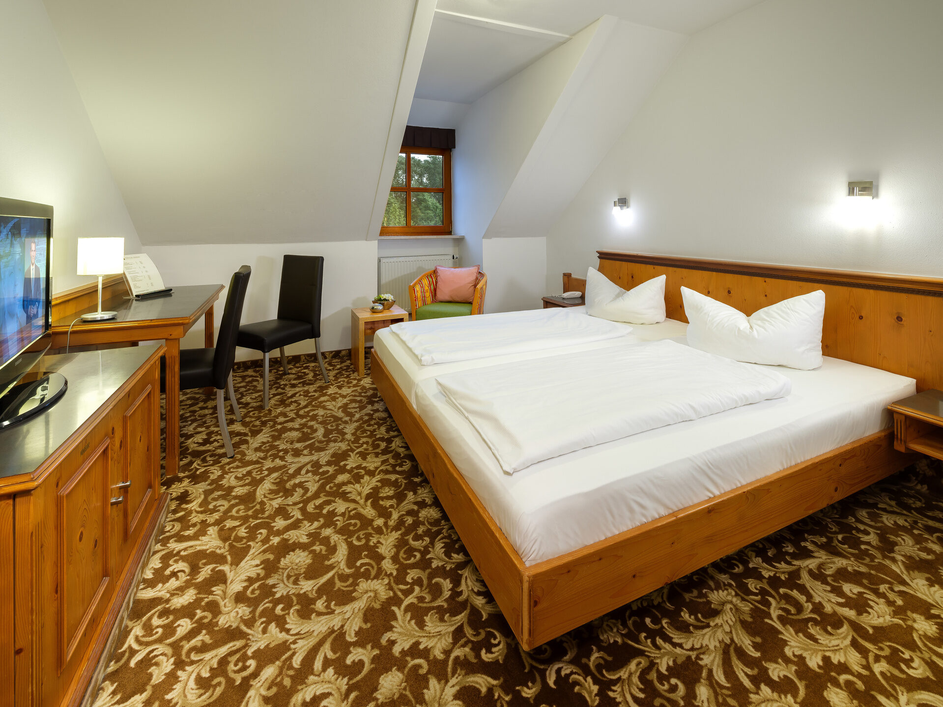 Our Classic Room offers everything you need for a relaxing stay for two. Warm wooden furniture and soft carpeting create a cozy atmosphere where you will immediately feel at home.